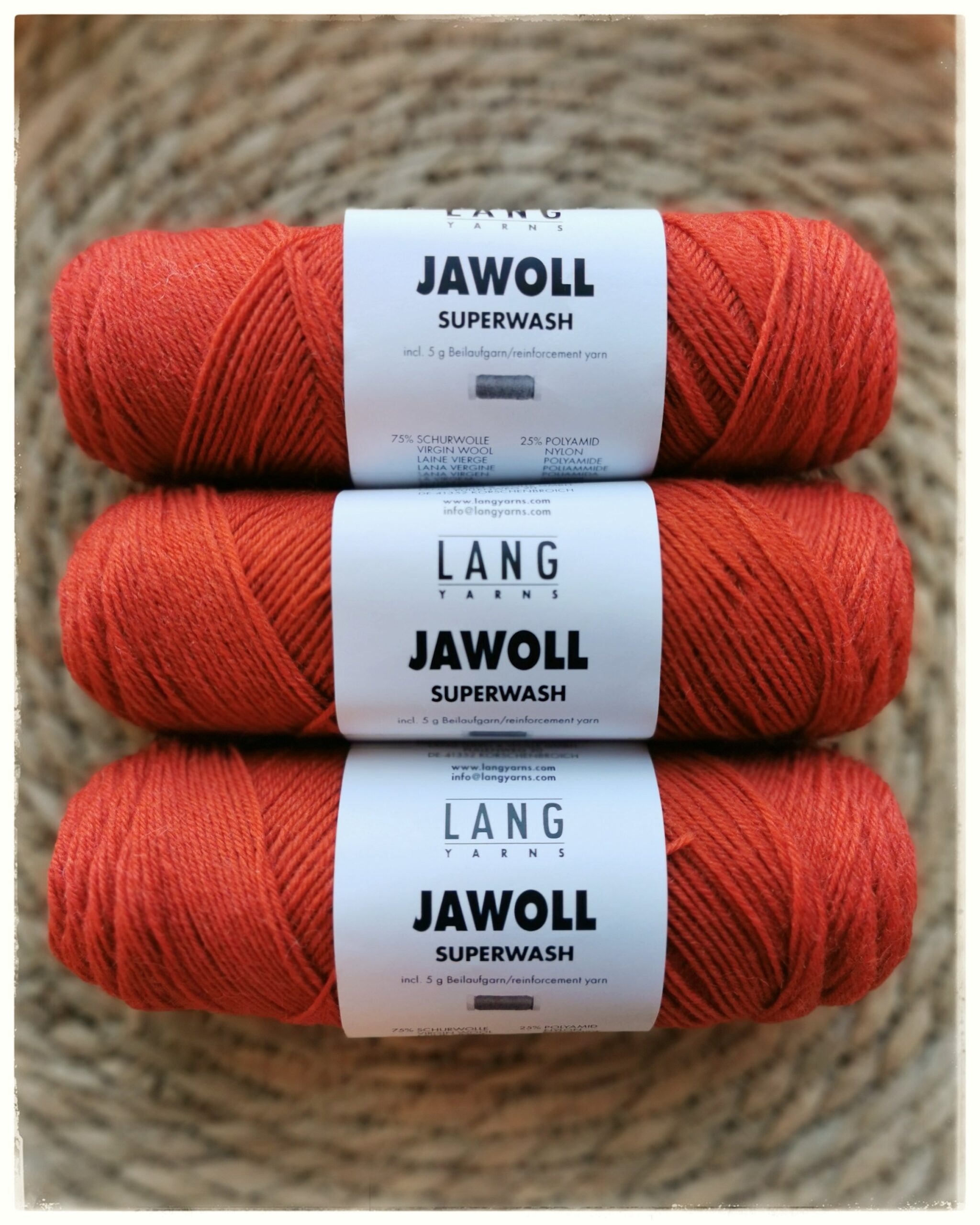 Lang Yarns Jawoll on kestävä fingering-vahvuinen (420m/100g) sukkalanka, jossa on 75% (corriedale)villaa ja 25% nylonia.